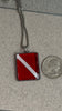 Scuba diver necklace down flag glass pendant set in stainless steel bezel