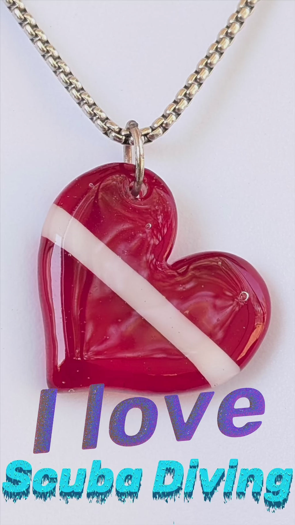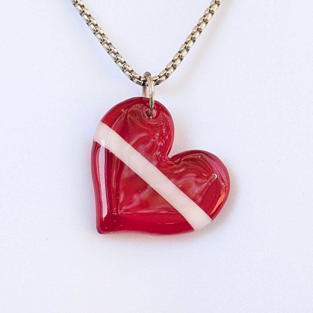 Scuba diving jewelry, diver down flag necklace, fused glass pendant, heart-shaped scuba necklace, ocean-inspired jewelry, Mother's Day scuba gift, scuba diver gift for her, nautical heart necklace, red and white diver pendant, handmade diver jewelry, unisex scuba necklace, scuba diving accessories, unique scuba diver charm, beach gift for mom, ocean lover necklace, water jet cut glass jewelry