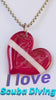 Scuba Diving Mother’s Day Gift – Fused Glass Diver Down Flag Necklace in Heart Shape