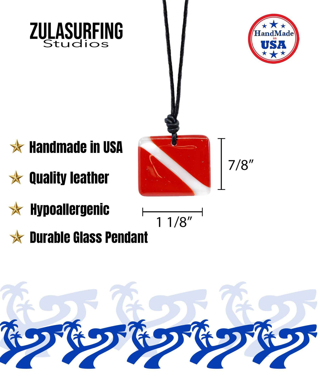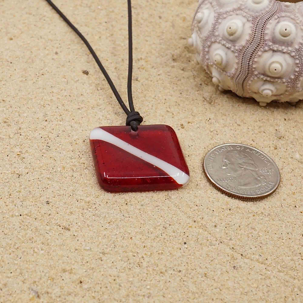 Scuba Necklace Gift / Diver down flag Necklace / Ocean jewelry fused Glass Handmade by ZulaSurfing studios