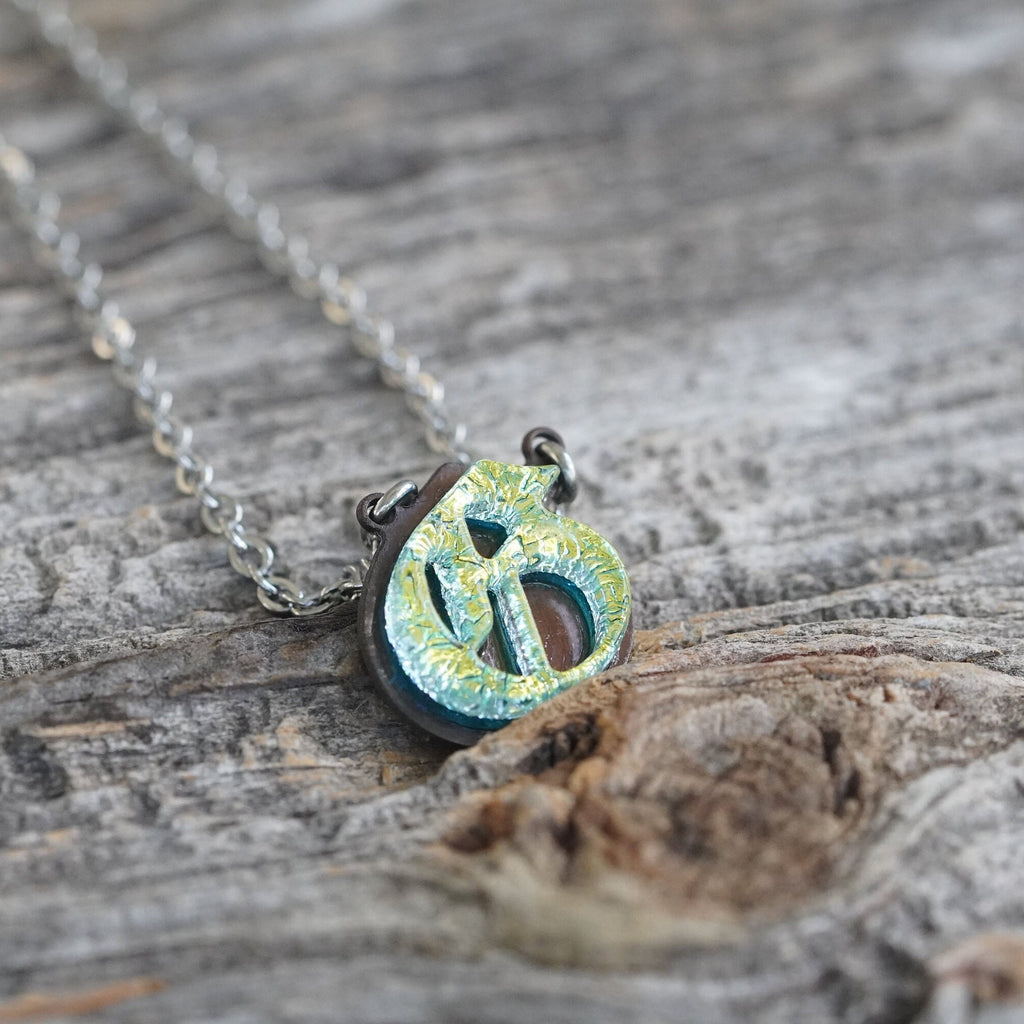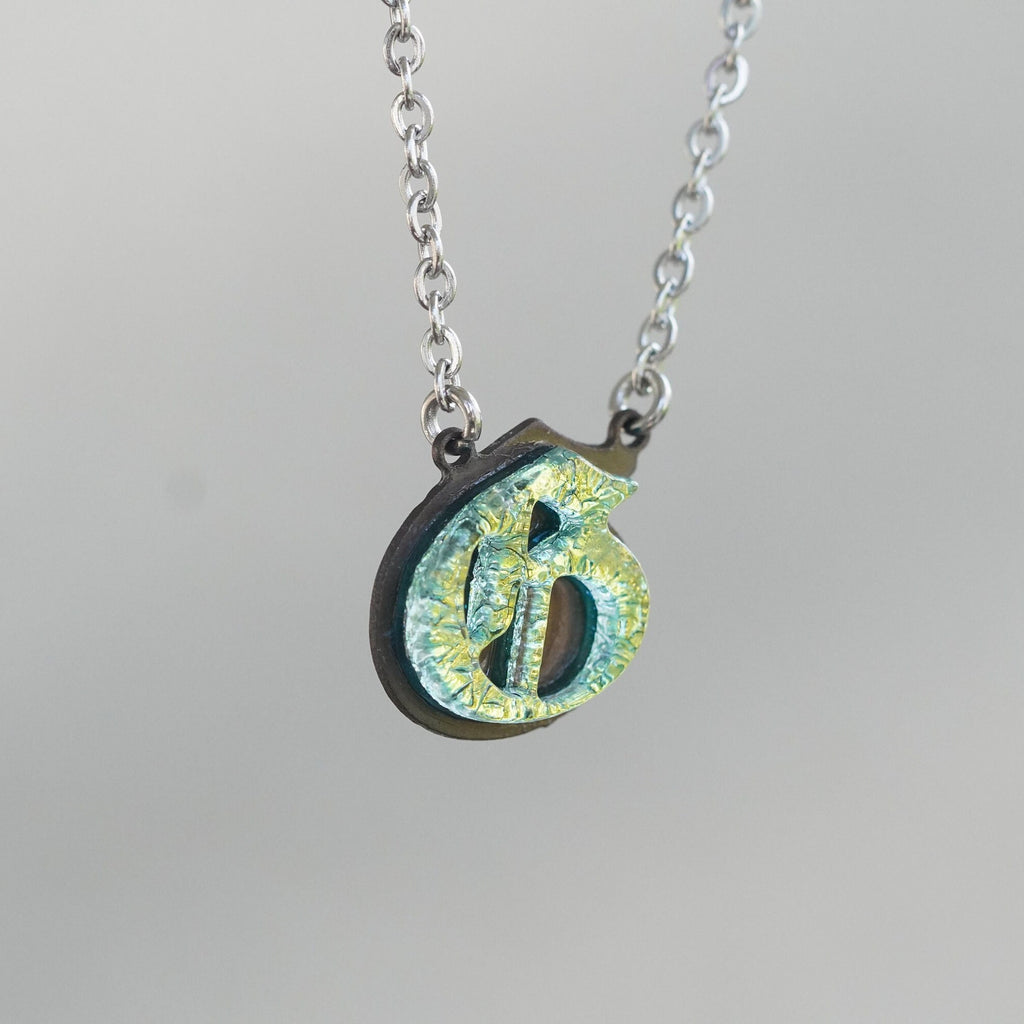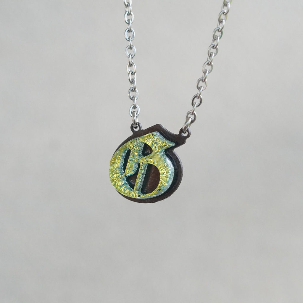 Introducing our exquisite G Initial Letter Necklace, meticulously handcrafted in our Studio based in Florida. This stunning piece of initial jewelry showcases the timeless allure of the old English font(as close as possible). Carefully crafted from fused dichroic glass in a captivating Gold hue, the pendant exudes an extraordinary charm.