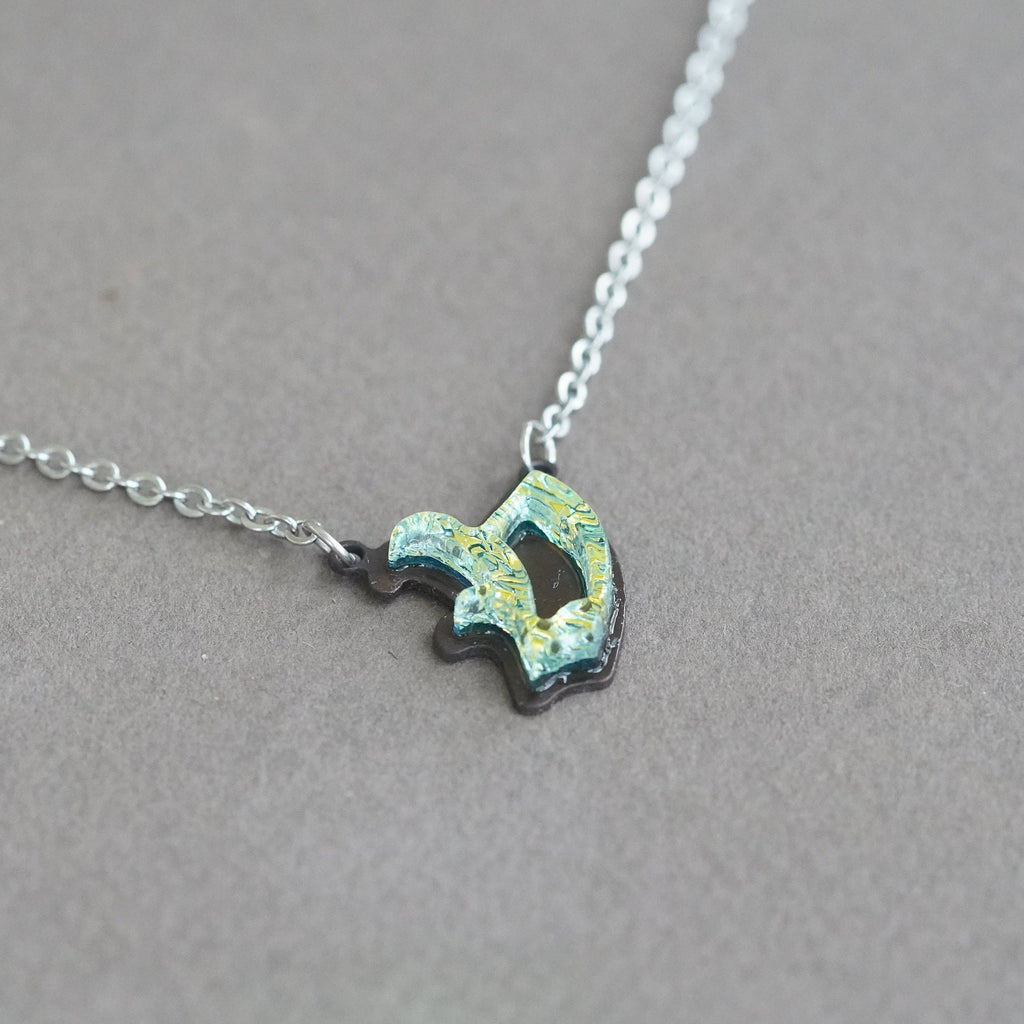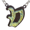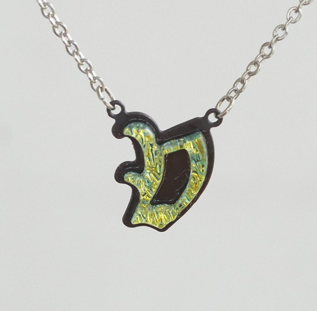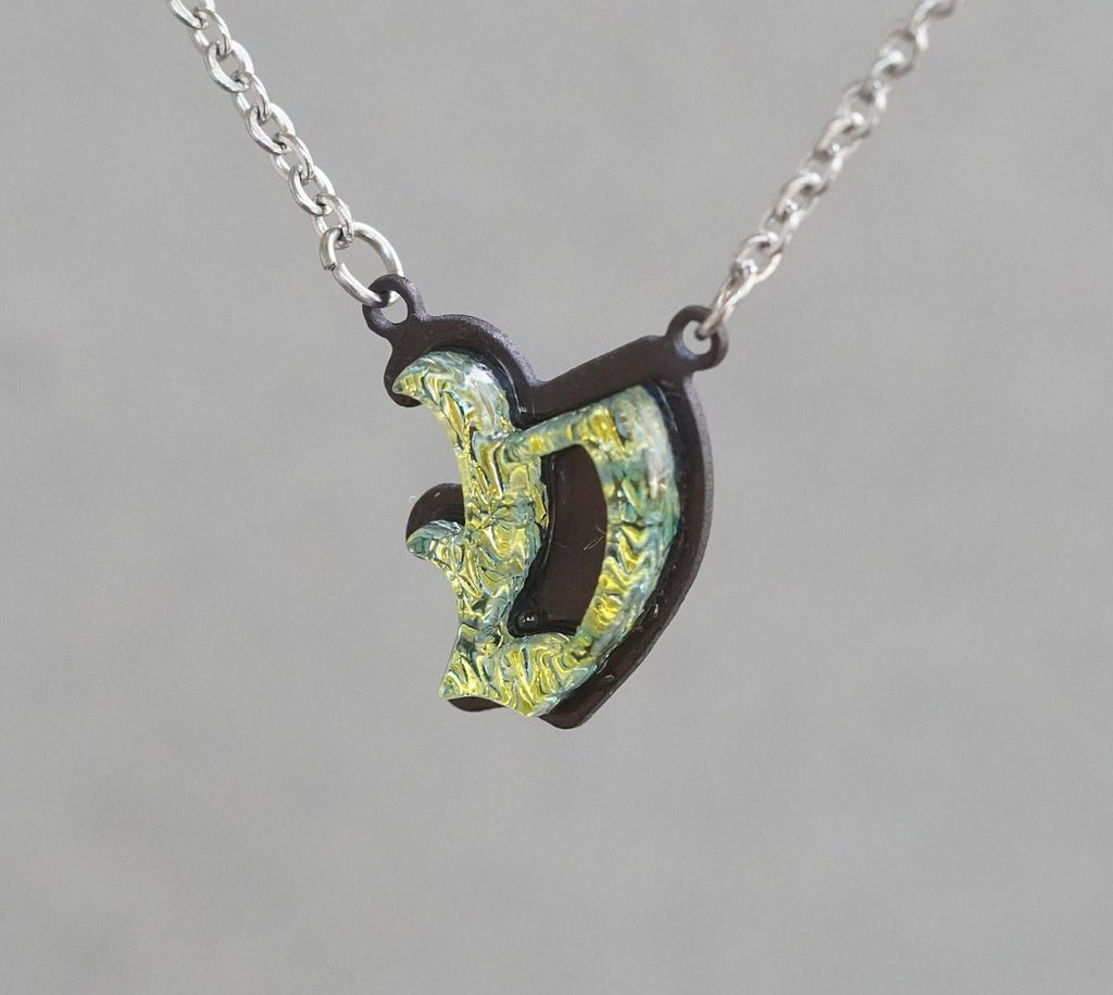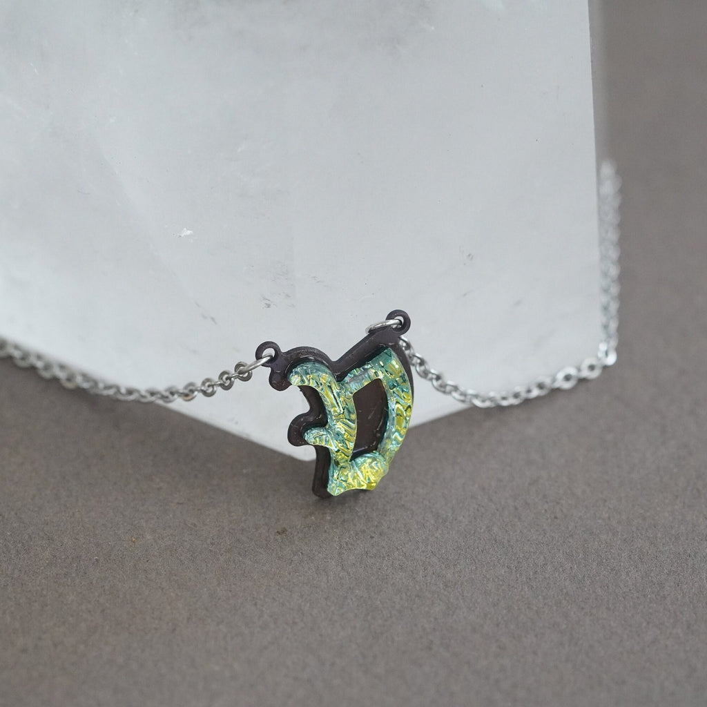 Introducing our exquisite V Initial Letter Necklace, meticulously handcrafted in our Studio based in Florida. This stunning piece of initial jewelry showcases the timeless allure of the old English font(as close as possible). Carefully crafted from fused dichroic glass in a captivating Gold hue, the pendant exudes an extraordinary charm.