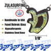 Making it a popular choice for creating unique and eye-catching jewelry and art pieces, when the treated glass is heated and fused together, it forms a mesmerizing and vibrant surface, displaying a stunning array of colors that shift and change depending on the angle of light. Fused dichroic glass has been treated with multiple micro-layers of metallic oxides or quartz crystals through a specialized process known as vapor deposition. This treatment creates a glass with fascinating optical properties capable of simultaneously reflecting and transmitting different light colors.