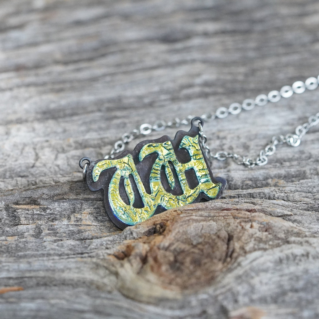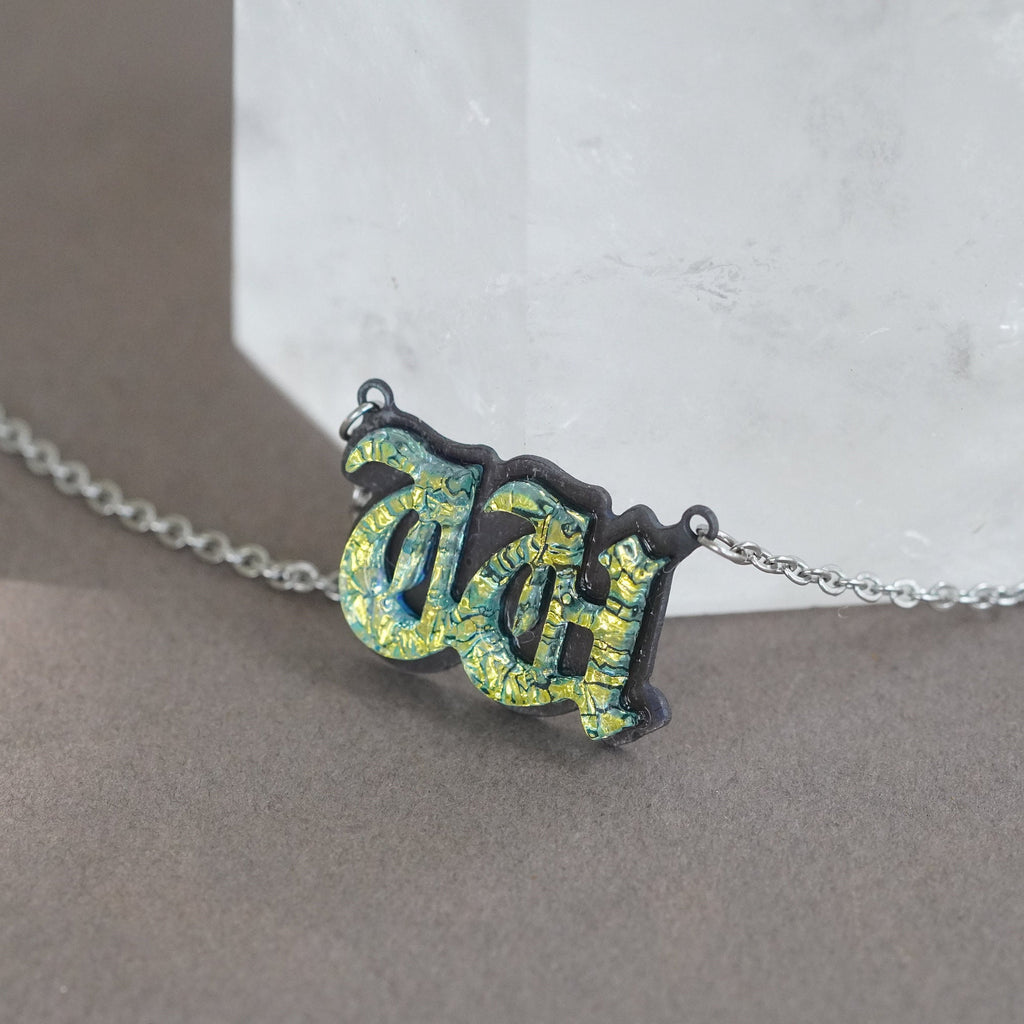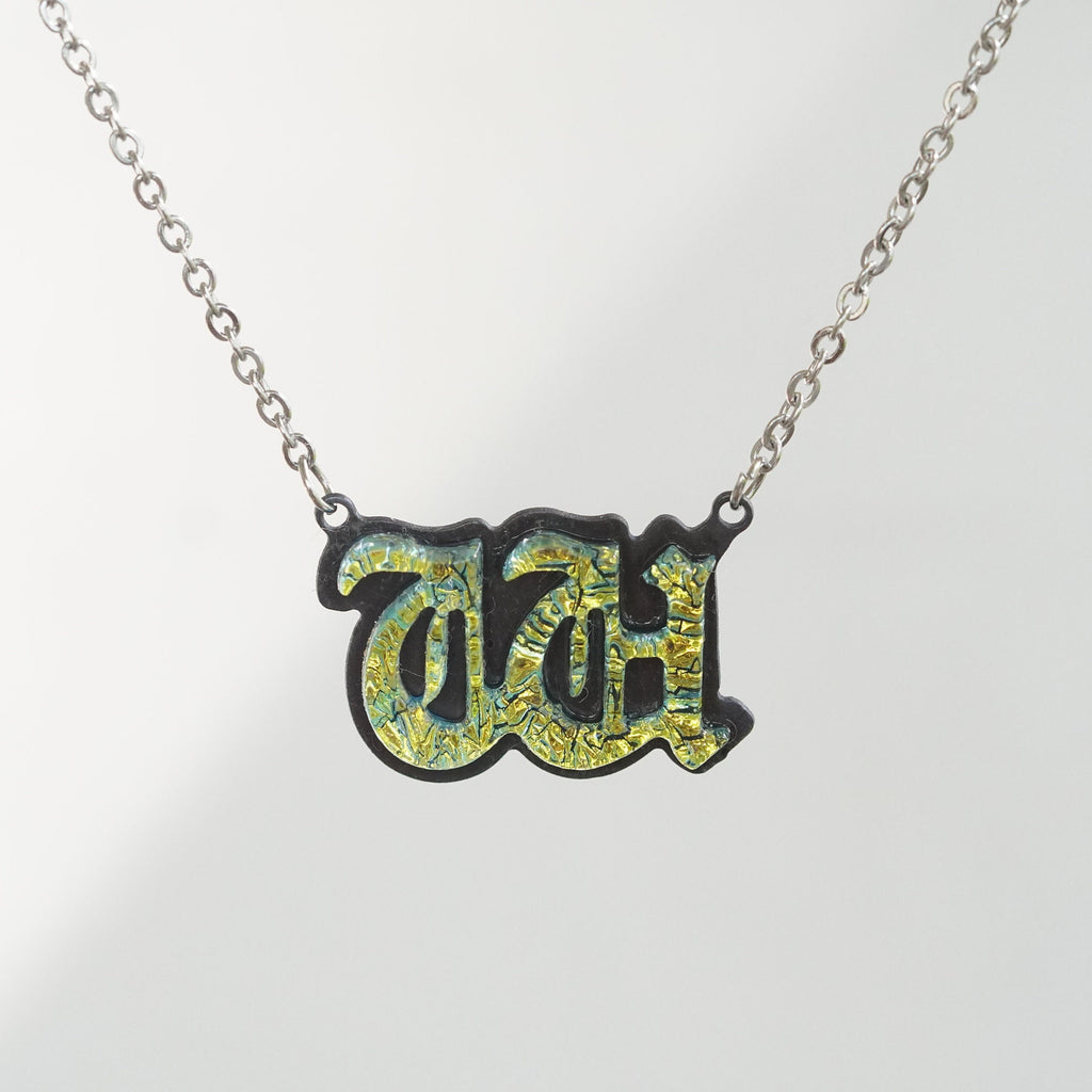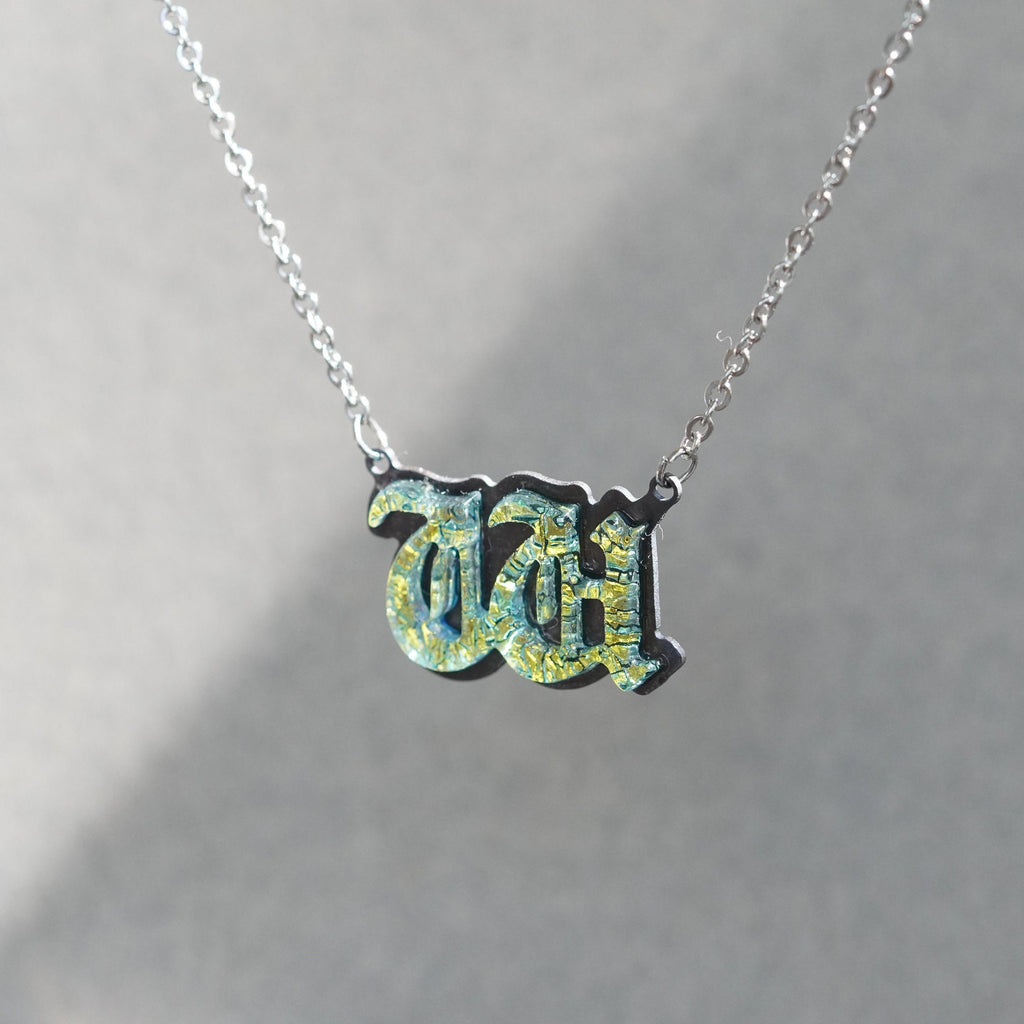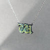 Introducing our exquisite W Initial Letter Necklace, meticulously handcrafted in our Studio based in Florida. This stunning piece of initial jewelry showcases the timeless allure of the old English font(as close as possible). Carefully crafted from fused dichroic glass in a captivating Gold hue, the pendant exudes an extraordinary charm.